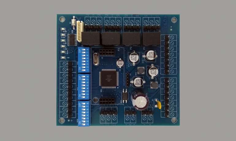 Изготовление печатных плат Киев — изделие IO Controller: односторонний smd-монтаж, dip-монтаж, 59 smd-компонента, 100 штук в партии.